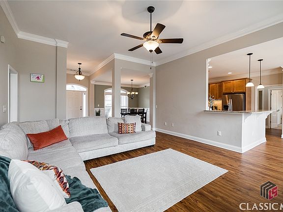 This stunning 5 Bedroom, 4 Bathroom home is located in the highly sought-after Creekside subdivision in North Oconee school district! Walking through the front door, you will find an open-concept living area with high ceilings. The large windows let in lots of natural light, making the home feel big and bright! Master on Main with 3 other bedrooms and 3 full bathrooms on the main floor! Bonus Room with its own bathroom upstairs! The backyard is GREAT for people who love entertaining. A fenced-in yard with an outdoor granite bar area and built-in space for a TV will make your home the place to be for Game Days and warm summer nights!