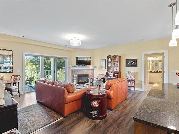 TOP FLOOR TWO-BEDROOM CONDOMINIUM WITH WOODED VIEWS. Like-new in this second-home, rarely occupied upscale 1,260 sq-ft 2BR, 2BA condo with secure underground parking and building elevator. Feat. 9’ ceilings, fireplace, energy efficiency, granite counters throughout, stainless appliances, laminate flooring, and large covered porch. Building amenities include foyer entrance, elevator, secure parking, storage room, library, and three exercise rooms (cardio, weight, yoga). On bus route to north hospital, dental and law campus before heading downtown.