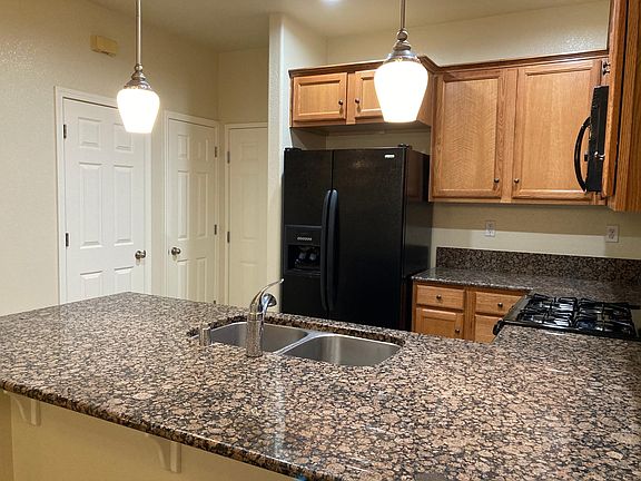 Two bedrooms 2 1/2 bath townhouse with a one car garage with direct access. Kitchen has Granite countertops, all black appliances, walk in pantry, breakfast bar. There is a guest half bath downstairs and upstairs a large primary bedroom with double closets , double vanity, tub shower and separate toilet closet and a second bedroom next to the hallway full bath and laundry closet that fits full-size washer dryer and is set up for either electric or gas . For more information or to arrange a showing please call Syndi at 322-9504. Owner pays HOA which includes Water & Garbage. Tenants must have a credit score of at least 630 an excellent rental history and have an income of at least $5400.00 per month. This is a no smoking property. Small pets on an individual basis.