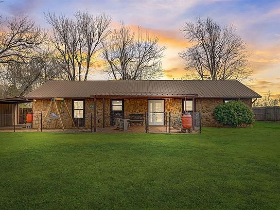 Wagon Trail has gorgeous curb appeal. This property is on a corner lot, with several trees surrounding the home. We know how Oklahoma weather can be, but we have you covered with this metal roof. Front porch sittin' would be my favorite past time! Inside, you will find your living space cozied up next to windows peeking out into the large front lawn.