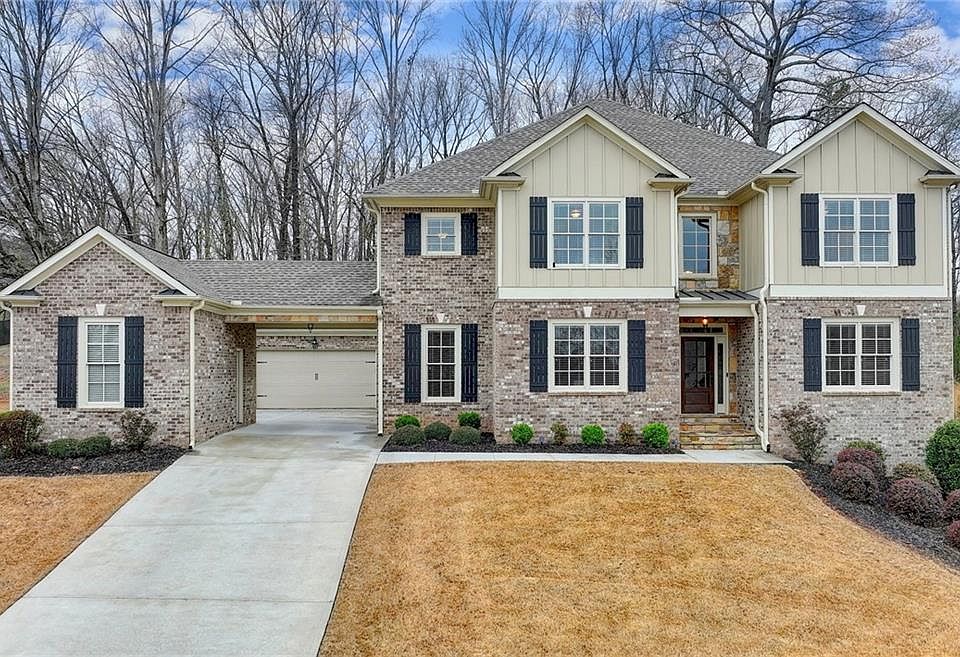 RARE opportunity in the pristine and coveted neighborhood of Woodbury Place located in beautiful Auburn, Georgia just outside Braselton. This grand 5 bedroom/3.5 bath home is complete with a porte cochere 3 car supersized garage large enough for a large truck or van PLUS a full unfinished basement sitting on .42 acres backing up to incredible privacy. Beautiful REAL hardwood floors, massive Owner's Suite with sitting area, huge spa-like bathroom, incredible closet and a private Home Office ALL on the main level. Large banquet sized dining room as well as breakfast room. A Chef's kitchen to die for with 6 burner gas cooktop and COMMERCIAL grade GIGANTIC refrigerator! 4 Bedrooms upstairs PLUS media room AND FULL unfinished basement! In addition, the garage is supersized for a large van or truck! The neighborhood is private and quiet, a perfect place and close to everything! This home truly has it all and is a TON of house for the money, it will sell quickly, so schedule your showing today!