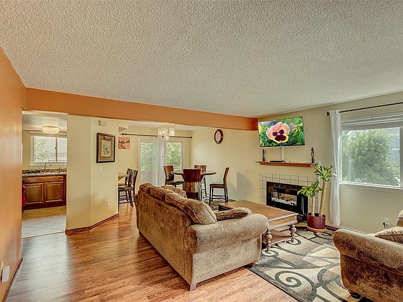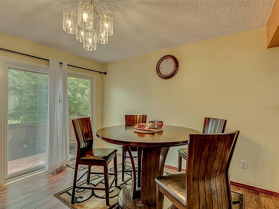 Gorgeous, 2-bed 2-bath 2-Carport end unit townhome that has a finished basement & is adjacent to a greenbelt! Enter and step on the new laminate-wood floors, which extend from the living room to the dining area. The living room is spacious, light & bright and has an electric fireplace. The kitchen features newer cabinets, newer countertops, & a tile floor. The dining area is open to the kitchen and to the living room and overlooks the deck/patio. Upstairs you'll find a spacious master bedroom that has an en-suite master bath & a walk in closet. There is a spacious second bedroom upstairs. The finished basement has a home theater system (included), a half bath, & a laundry room (washer & dryer included). Don't forget to go outside to the deck that is perfect for grilling/entertaining. Newer Windows, New Roof (2018). There are extra parking spaces in the community & adjacent to the townhome.