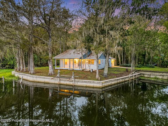 Escape to your amazing slice of heaven with this one-of-a-kind, picturesque riverfront property—a rare opportunity for those seeking privacy, serenity, and stunning natural beauty. Nestled in an extremely secluded setting and SURROUNDED by water, this home offers the perfect balance of modern comfort and rustic charm. This 2 Bedroom 2 Bathroom Oversized 2-Car Garage home has plenty of updated improvements including a new Roof, new water heater and a newer HVAC. Refreshed kitchen cabinets and brand-new stainless steel appliances along with new flooring, new commodes, new sinks (kitchen and baths), new fixtures and the fresh paint inside and out make for worry-free living. The highlighted features include a jetted tub and the woodburning stove for cozy nights in, the gated entrance ensures privacy and peace of mind, approximately 230 feet of seawall along your private riverfront, your own boat slip—perfect for fishing, boating, or sunset cruises and a huge detached workshop/shed for hobbies, storage, or extra workspace. All of this is protected by a brand new Intrusion Prevention System monitored alarm.