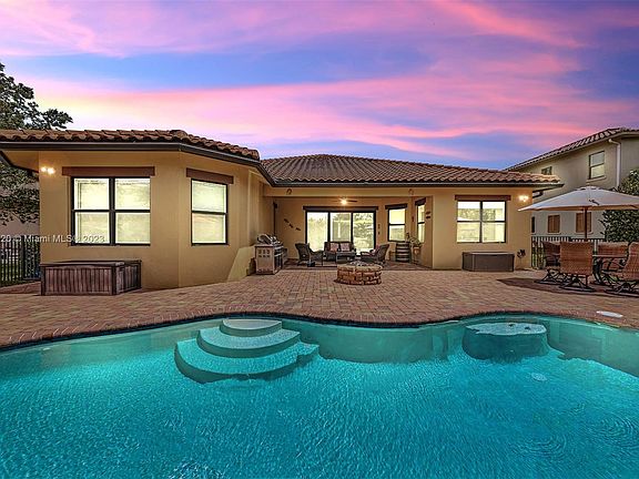 Magnificent one-story open space Cottonwood model home built in 2016 inside the desired community of Heron Bay, 4 Beds & 3.5 Baths with lots of upgrades. Vaulted Ceilings, Marble floors, beautiful pool with extended backyard fence & a fire pit ideal for entertaining guests. Huge Master with motorized blinds, double vanities, Walk-in closets & roman tub. The kitchen and baths with granite tops. KitchenAid Stainless steel appliances. Walk-in Pantry, Oversized kitchen island, cabinets & doble wall ovens. Reme Halo air purifier system plus central dehumidifier. Impact windows with Hunter Douglas blinds. Smart home alarm system. Gas appliances & Water Heater. 2 car garage. Heron Bay Resort-style gated community, 2 clubhouses, fitness, tennis courts, pools & more. “A” rated schools district