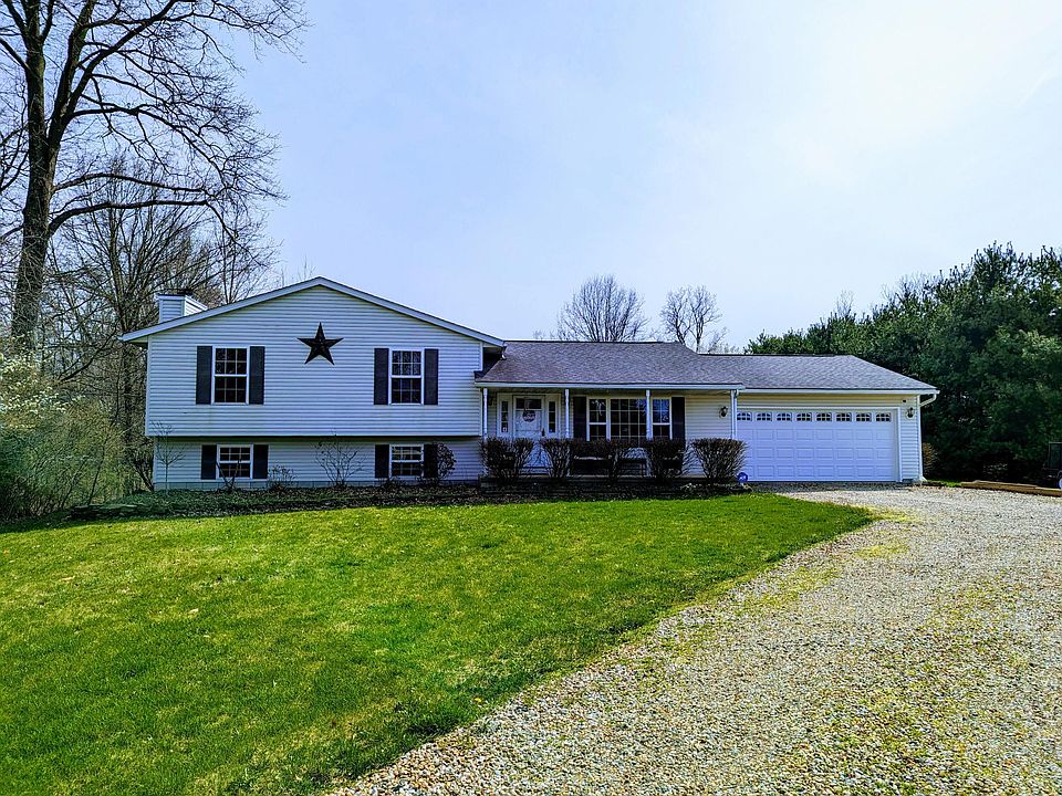 Well maintained, large open floor plan home on 2 acres w/all amenities. Entertain out back by the pool, fish in the pond & a firepit at dusk w/room for an outbuilding! Huge deck surrounds the pool Amazing wildlife, landscape, flowers & trees abound. 2017 NEW ROOF, SUMP & added Port Generator hookup & converted from Electric to Gas heat w NEW Furnace/AC, 2018 NEW Pool liner, 2019 Stainless Appliances, 2022 New Garage Door, Kitchen faucet & Drainage repaired. Video Surveillance system (Military grade, night vision, 2 way audio, worldwide monitoring etc) BIG BEDROOMS, Warm PELLET STOVE can heat the ENTIRE HOUSE) Finished basement & lower level can be 4th bedroom. WAY BIGGER THAN IT LOOKS with reasonable taxes. Hurry this one hasnt been available for 15 years! 2 hrs notice to show, please
