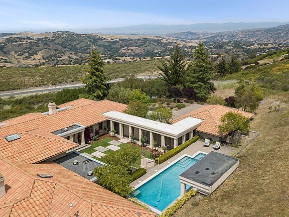 Sited perfectly on 6 acres of privacy in the established Bay Ridge community, this single level home enjoys over 180 degrees of panoramic views of Monterey Bay, across to Santa Cruz, Fort Ord open lands and the Salinas Valley. The tree-lined driveway sets the tone as you drive up to the property - something special awaits. Enter the sun-filled courtyard and discover a private retreat. Inside is an experience of senses from soaring two story high ceilings of the living room to the intimate space of the dining room where you enjoy views of Monterey Bay. The kitchen features Taj Mahal quartzite countertops, marble backsplash, and a large prep island The effortlessly chic 4800+ sq ft home offers a 3 bedroom guest room wing and the principal suite retreat. French doors throughout the home open out to the central courtyard, the heart of the home, which leads up to the pool pavilion, guaranteed to be the place you will spend much of your time, simply laying in the sunshine or in the pool.
