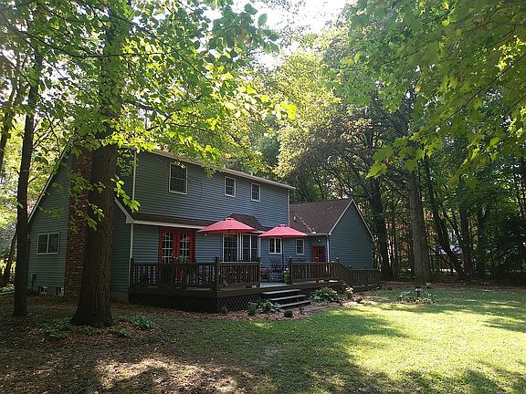 Nestled in the woods, enjoy the quite and peace of the country with this lovely 1 ½ story home. Located halfway between Frankenmuth and Birch Run. Enjoy the Frankenmuth Schools with the benefits of Birch Run taxes. This cape cod style home of 1,845 sq. ft., 3 bedroom, 2 full and 1 half bath features crown molding, 6-panel doors, wrought iron accents, and ceiling layering. The large great room has a beautiful view of the tranquil backyard though French doors that lead to the two level deck. Cozy up to a warm fire in the masonry brick fireplace with a full brick accent wall and hearth. The kitchen with new countertops has a open concept to the dining area with walk out bay. The back entry has laundry area and half bath powder room. All new vinyl floors and newly refinished hardwood floors. The 3 bedrooms are located on the second floor. The master bedroom features a walk-in closet and private full bathroom. The master bathroom has been fully redone with new shower, stool, tile and vinyl flooring. The full main bathroom is also fully redone with new tub, stool, sink, tile and vinyl flooring. The other two bedroom feature large closets with plenty of storage. All new carpet. The fully finished basement has two large rooms with new carpet and two storage rooms perfect to keep everything well organized. The perfect home for you and your family. Enjoy the outdoors with a lovely landscaped yard. Beautiful flower beds adorn the front and backyard. Dine outside on the spacious two level deck. Roast marshmallows with family and friends around the fire pit. Enjoy watching wildlife of deer and turkey stroll through the yard.