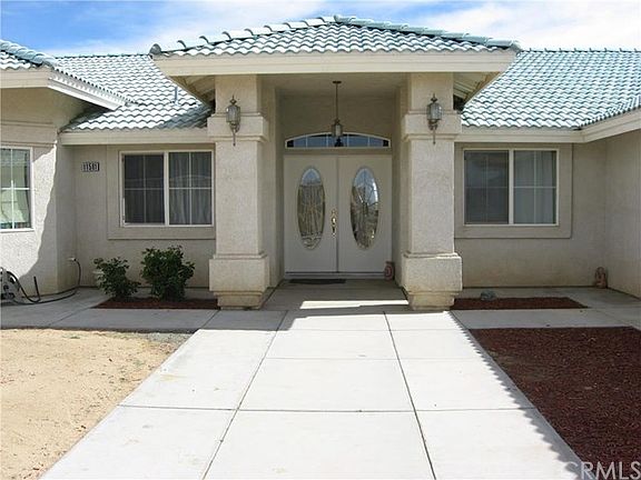 DESERT LIVING ON 2.27 ACRES; HORSE PROPERTY; MOVE IN CONDITION; Beautiful split design 4 bed room 2 bath home. Double entry doors with clear lead glass opens into tile entry. Fireplace with insert/blower & wet bar in living room, carpet flooring. Separate formal dining room, carpet, large kitchen, tile floor, oak cabinets, marble counters, area for table, with plenty of windows. Laundry room has sink, oak cabinets, tile floor, Master bed room, ceiling fan with light, Cathedral ceiling, double closets with mirror doors & shelves. Master bath has garden, Jacuzzi tub, separate sower, tile floor, oak cabinets,& double sinks, Bedroom#2 has carpet ,shelves in closet Cathedral ceiling. Bed room #3 on other side of home , carpet closet with shelves. #4 Bed room has carpet , closet with shelves. Bath room #2 has tile floor, oak cabinet, separate oak storage., shower/tub combo. 2 car garage completely finished inside, side door to yard, also entry into house. Property has chain link fence with double entry gates, all natural desert landscaping RV access, & parking, with plenty of room to grow. Home has been completely painted inside. Covered patio, portable Jacuzzi on patio stays with property