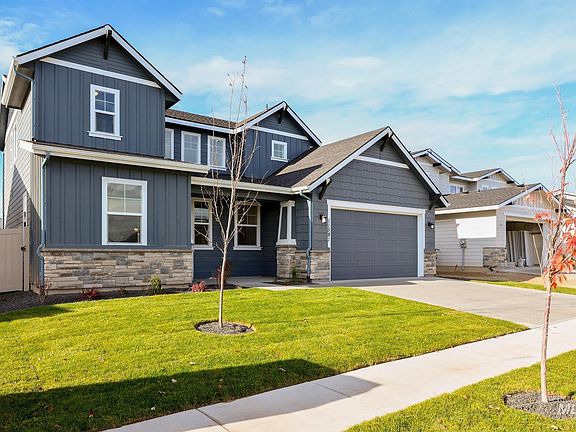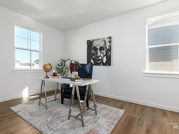 Featuring an idyllic blend of open-concept entertaining spaces and secluded retreats, the Olivia leaves a lasting impression. A charming foyer opens onto the alluring great room, overlooking a casual dining area and the spacious covered patio. Highlighted by a large center island with breakfast bar, the expertly designed kitchen offers ample counter and cabinet space as well as a walk-in pantry, gorgeous quartz countertops, wall oven and gas cooktop. Secluded on the second floor, the lovely primary suite features an ample walk-in closet and a beautiful primary bath with dual-sink vanity, a large soaking tub, and tile shower. Two secondary bedrooms share a hall bath and offer sizable closets as well as convenient second floor laundry. Private office downstairs. Carriage hill amenities include a swimming pool, pool house, and playground and is a short drive from Lake Lowell and Deer Flat National Wildlife Rescue. 3 car garage. Front and rear landscape included. BTVAI
