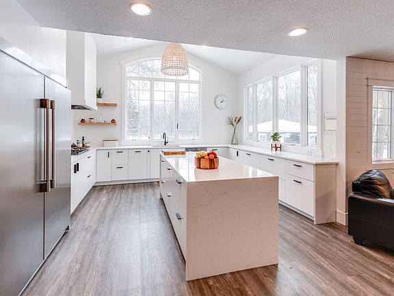 Gorgeous private retreat on a sprawling 5.9 acre lot! Dream kitchen that was just remodeled offers quality ss appliances, quartz countertops, vaulted ceiling, and large windows overlooking the backyard. Formal dining room, formal living room with gas fireplace, and family room are also on the main level. Main level master suite with walk-in closet, private bath, and gas fireplace. Main level laundry. Five bedrooms on the upper level offer a ton of space. The unfinished lower level gives room to expand. 2-car attached garage plus 2-car detached garage. Inground pool with slide and pool house that features a sauna kitchenette area and bathroom. The huge shop has all the storage you need plus full living quarters. Open enrollment to top-rated Delano Schools. Lots of trees plus the deep lot give generous privacy. This one is a must see!