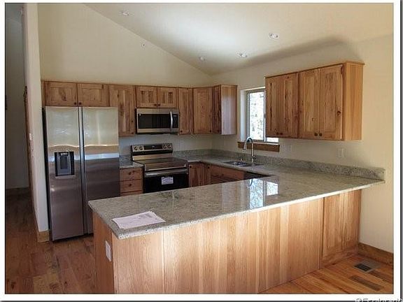 New Home, near Conifer, Vaulted beam ceiling, Hickory cabinets, granite countertops, tile Bathroom, Great rock entrance, woodstove in the living room, dining area, 2 Bedrooms, full bath, plus full unfinished walkout garden level for future third bedroom and 2nd Bath