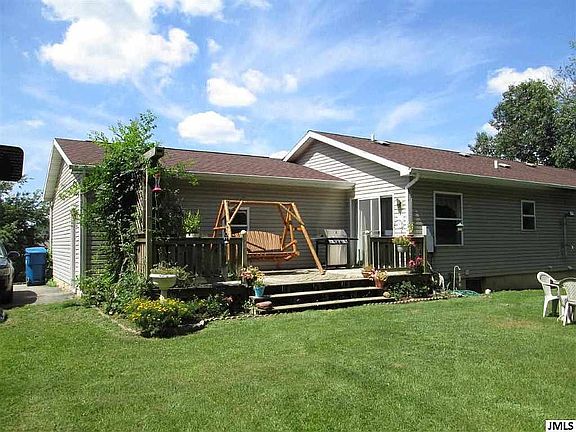 Easy access right off US 12 but county atmosphere. Open concept kitchen, dining & living room. Family room and den in finished basement with walkout. Kitchen has breakfast nook that opens onto deck. Nice above ground pool surrounded by decking & fenced for safety. Heated garage and a pole barn with elec & wood burner for all your projects. Wooded back yard and beautiful landscaping.