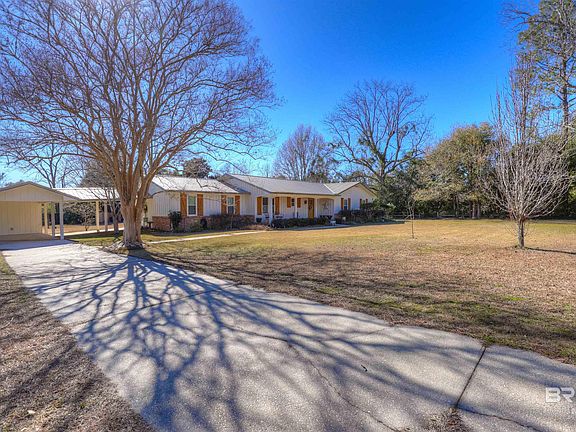 EXPECTED ON THE MARKET DATE 2/21/2024. Located in Fairhope, AL lovingly maintained and situated on a one (1) acre mature tree lot with no HOA. Freshly painted inside and out this single-story home boasts plenty of indoor and outdoor living in a serene and private setting. Home features four (4) bedrooms and three (3) full baths. Primary bedroom includes two walk-in closets, separate vanities and a cultured marble walk-in shower for convenience and comfort. Fourth bedroom and bath have a separate entrance which is ideal for an in-law suite or home office. The kitchen was newly remodeled in 2023 with modern upgrades such as soft-close cabinets, farmhouse sink, granite countertops and features a bar sitting area. The home boasts two (2) porches, an inviting front one and a covered back porch which leads directly into the screen enclosed salt-water pool with travertine decking completed in 2021.Property also includes wood, LVP flooring throughout, gazebo, greenhouse, two (2) separate storage buildings, carport and much more. A must see in person.