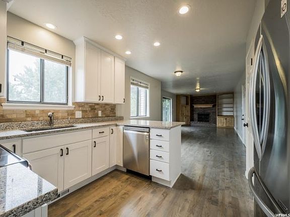 PRICE REDUCED! Beautifully Updated Two Story! Prime Sandy Location W/ Valley Views! Brand New Kitchen Offers White Craftsman Style Cabinetry, Granite Tops, Tile Back Splash And Stainless Steel Appliances * Formal Living & Dining Rooms * Main Floor Family Room W/ Brick Fireplace & Built-Ins * Crown Molding, Laminate Flooring, New Carpet * Daylight, Walk-Out Lower Level Offers Second Full Kitchen, Large Family/Rec Room * Terraced View Lot W/Mature Landscaping, Expansive View Deck, RV Parking & Covered Porch
