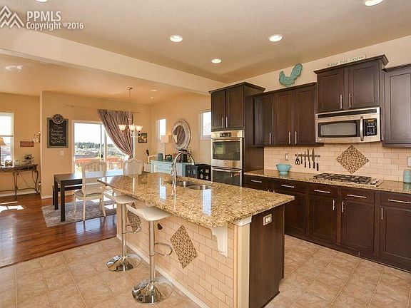 In the much sought-after Wildwood Ridge neighborhood, youll fall in love with this charming, well-appointed 2-story! The open floor plan on the main level boasts the gourmet kitchen w/island, pantry & stainless appliances, as well as the open, bright great room w/wood fireplace & dining area w/walk-out to the wood deck offering unobstructed Pikes Peak & Front Range views! Upstairs youll find the spacious MBR w/adjoining 5-pc. bath, 2 bedrooms & a full bath, and the conveniently-located laundry! The walk-out lower level features an inviting family room, 4th bedroom & a full bath. Wildwood Ridge offers beautiful well-manicured & professionally landscaped yards & green areas. The home is directly across from one of the park-like settings! Easy access to I-25, schools, shopping & dining opportunities!