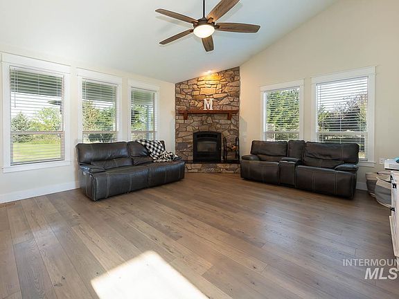 Beautiful home on almost one acre, approx. 2 miles S of Falcon Crest Golf Course. BRAND NEW FURNACE AUG 2022. Newer paint inside and out. Mstr & junior suite on main floor. 2 year old high end carpet and LVP flooring.Granite slab counters in Kitchen w/arched entry to FR. Mstr Suite includes private door to backyard w/walkway to covered patio, mstr BA has travertine floors, walk-in shower & soaker tub. Huge full tile shower on main floor bathroom.LARGE bonus room upstairs, laundry shoot and built in office. New light fixtures throughout and water softener. Lots of storage space throughout. 3 huge walk-in closets. Large garden. Beautiful gazebo in the back, and a large shed/small shop with power. Incredible neighborhood!