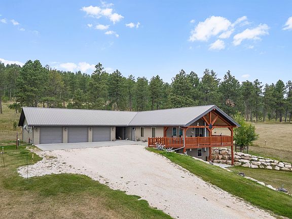 Picturesque 20.71-acre ranchette located off of War Bonnet Road just minutes west of Custer and directly next to thousands of acres of BHNF land with views straight out of a magazine! This customized property includes the spacious 4-bedroom, 3-bathroom, 3000+ square foot home beautifully finished with Hardwood and Tile Floors, Pine covered ceilings, natural Slate surrounded fireplaces, and an open main area floorplan. Adjacent to the custom home and through the covered breezeway sits the oversized 3 car garage with concrete surfaces all around. A few steps away are the 8x16 "Chicken Condo" and 10x20 Greenhouse with additional outside garden areas. Then we must talk about the Morton pole barn space for all your toys and critters. This 60x66 space is wide open inside to make the possibilities quite numerous. 12-foot-high doors on either end, separate animal stall doors on the side with outside fenced stalls, a separate tack/feed room, concrete surfaces, water, and power are all included. All this and situated on 20.71 native grass covered acres of the Southern Black Hills. Truly a property that lends itself to many different types of buyers, with many different items on their wish lists. Did I mention the backup handpump on the well in case of a no power situation?