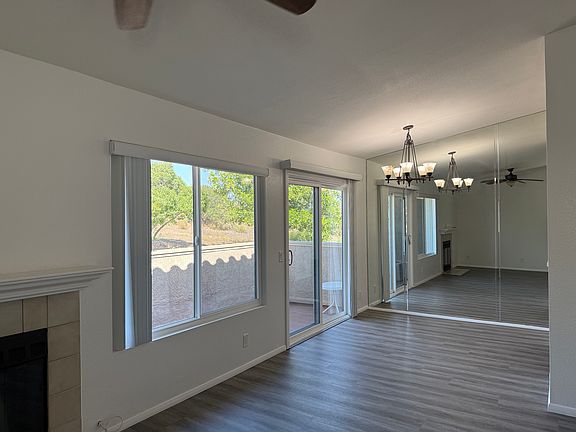 Large, Upstairs TWO bedroom TWO bath condo approximately 1000 square feet in the Mirasol complex. Freshly painted, new vinyl plank flooring throughout. New vanities in both bathrooms,. Primary bedroom boasts an en-suite bathroom with double sinks. Large walk-in closet. Private balcony looks over "open/green space". New stove and dishwasher. Refrigerator INCLUDED . Ceiling fans in both bedrooms and living room. New energy efficient air conditioner with Energy Saving dual-pane windows and sliding door. "IN-UNIT" FULl-SIZE High-efficiency washer and dryer. TWO dedicated COVERED parking spaces. Community pool and jacuzzi. Conveniently located just minutes from shopping, dining, the MTS Trolley at Spring Street and major roadways including the 94 freeway. This home offers easy access to Cuyamaca Community College and other local attractions. Cats and dogs are accepted based on breed restrictions, (limit one pet). Pet fee of $500. Pool FOB deposit $100. Owner pays water and trash. Renter is responsible for electricity, internet and cable/satellite dish. No smoking of any kind allowed. To qualify, applicants must have renter's insurance, a good credit score of 600+, a gross income of at least 2.5 times the rental amount (proof of income MUST be provided) and no prior evictions. Once you've toured the property, each person who is going to live at the property (18 years of age) must submit a separate application. Positive rental references from current and prior landlords. First month rent and security, pet and FOB deposit due at signing of lease. Lease duration is six months, but could be extended at end of lease. Quiet complex, so no loud music. Available to tour starting Monday July 7th.