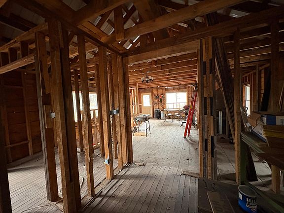 Unfinished shell home with a solid poured foundation, a metal roof, and some newer windows. Walls are framed and the electrical panel is connected. Some new windows, some old. This home does not have a well, heating and cooling, or plumbing in place.Many elements of this building appear really solid, and a great location in Presque Isle, close to all your recreational activities. Small and very charming little shed is included. Cash offers only.
