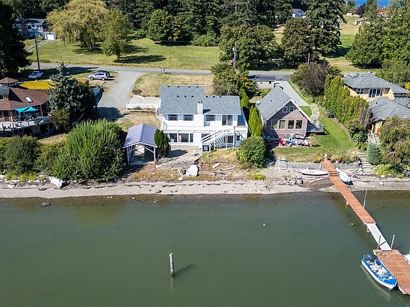WATERFRONT-60 feet of walk out, no bank saltwater beach on Alice Bay awaits a new owner. Price was just reduced. Savor an ever-changing natural environment from deck, patio or living rooms of this 2,382 s/f, 2 bedroom, 1 3/4 bath home. Be amazed by eagles, herons, migratory birds, seals, wildlife & stunning views of Skagit farmlands. Boat house for your kayaks, SUP, small boat & gear. Crabs, clams & oysters grow locally. Renown Bow/Edison w/restaurants, galleries, unique shops just minutes away. Perfect location for biking, birding & simply recharging in nature. Downstairs is plumbed & wired for MIL, electric utilities & heat pump, new roof, 576 s/f detached garage. Rare Samish Island home w/plenty of potential bring your designer/builder.