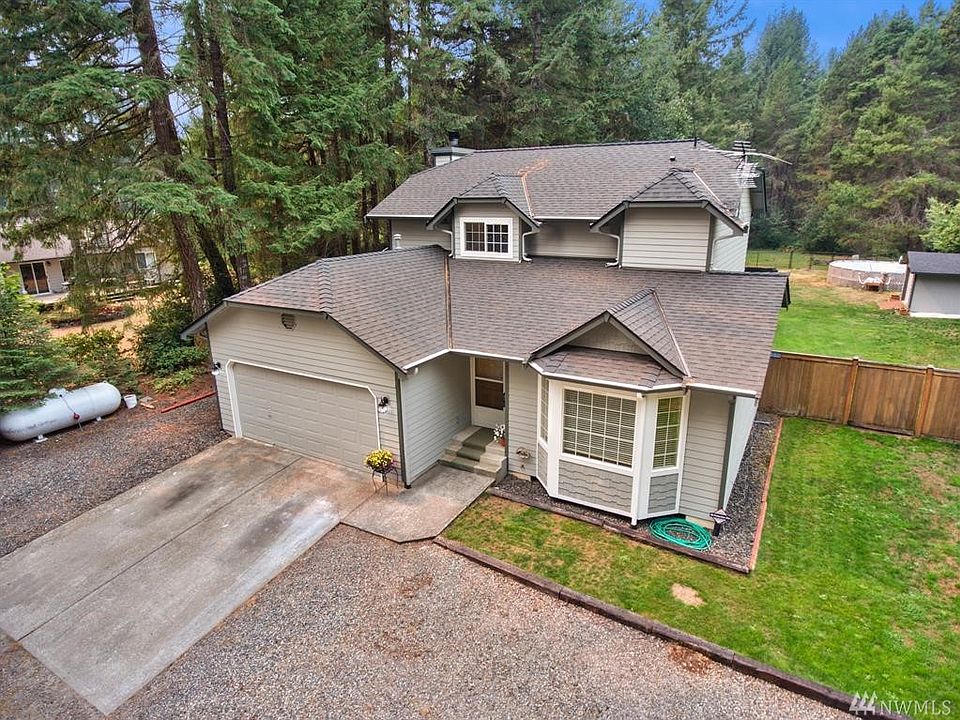 Tons of updates and amenities throughout this home and property on a quaint and quiet dead end street. Beautiful bamboo floors, tile and new grouted tile vinyl. Gorgeous built-ins in vaulted living room. 24 foot diameter above ground pool, hot tub built into new, gorgeous composite deck. Two year old roof! Totally remodeled upstairs. Recent exterior paint and leaf guard gutters! Out buildings/parking, RV parking. Tons of value here!