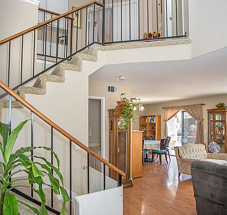 Come check out this great starter home today! This home features a high ceiling entrance with a welcoming living room with cozy fireplace and a lot of natural lighting. Property is a 4 Bedrooms, 2 1/2 bathrooms w/Bonus room that is currently being used as a 5th bedroom. Two car attached garage with direct access! Home has a spacious kitchen, recently installed laminated floors and carpet. Master bedroom offers master bathroom with skylights and also has a balcony perfect for you to relax and enjoy your evening. Home has great curb appeal, and is walking distance from shopping centers, schools and parks. This home is looking for a new owner to come add their personal touches. Act quick!