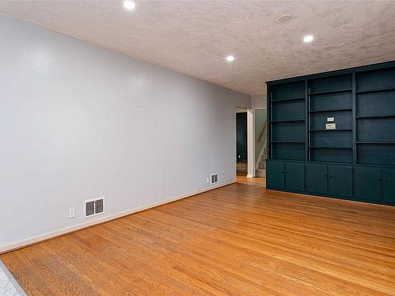 Finished basementExpansive primary bedroomHardwood floorsBright modern blue kitchenFull privacy fence