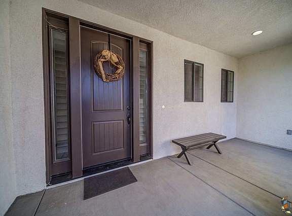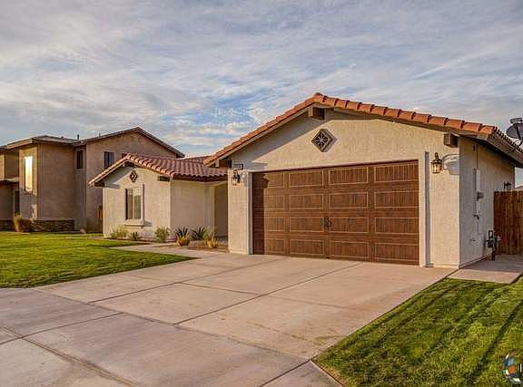 One of a kind, home in one of Brawley's newest communities, La Valencia Gardens. This stunning 2 year old home has extravagant fit and finishes. This custom tailored home is truly one of a kind, as you won't find any other homes of this size and dimensions in the neighborhood. When you walk through the oversized entry door, you will find yourself standing on high quality wooden planks that is throughout all of the main living area, with upgraded carpet and padding in the bedrooms. You will find wood planation style shutters throughout, Cambria Quartz countertops in the kitchen and master, stainless steel appliances, and oil rubbed bronze plumbing fixtures/door hardware throughout. There is a nice touch of Restoration Hardware products throughout: from the two full bathroom mirrors to the light fixtures throughout the home including kitchen pendants, dining room, bedrooms, and bathrooms. The backyard has a large covered patio and plenty of room to make your dream yard.