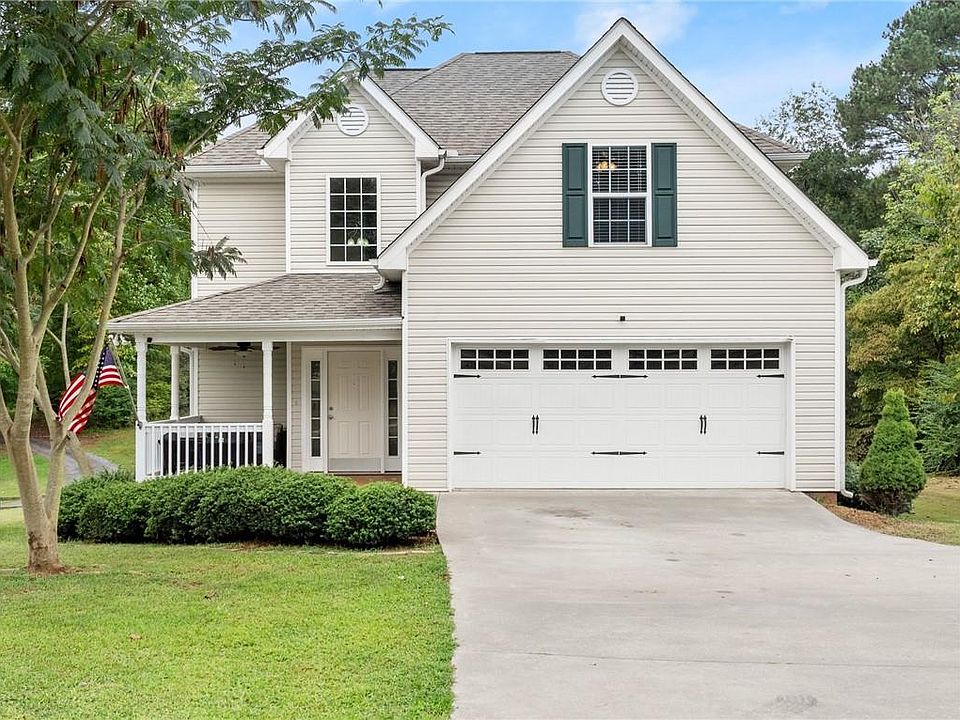 This well maintained one owner home is just 1.5 miles from the Dawsonville outlets. Built in 2015 this home features textured engineered wood flooring and tile in all baths. The open concept kitchen has beautiful stained maple wood cabinets with granite tops with a view to the family room. There is a double oven as well as all stainless appliances. Kitchen features three pantries. All bedrooms are on the upper level with easy access to the laundry room. The master bedroom showcases a large walk-in closet. The master bath has granite countertops with a luxurious shower with glass door and double shower heads. Larger whirlpool tub. Enjoy you evenings either on the covered front porch -- or enjoy entertaining on the back deck that leads off of the kitchen. This easy living location is like farm living with just a 5 minute drive to everything you need. No HOA community.