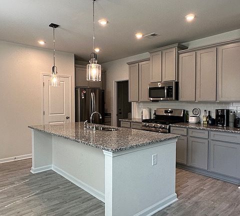 Step inside and be greeted by a grand two-story foyer and durable LVP flooring throughout the main level. The heart of the home, the kitchen, boasts elegant granite countertops, a convenient island, a spacious pantry, a gas oven, and sleek stainless steel appliances. It flows seamlessly into the family room, creating an ideal open-concept living space.