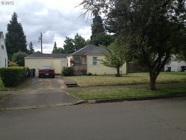 Easy to find as this is the only house in the Springfield area to feature a deep red Maroon roof! This bungalow is sweet and yet Simple. 2bdrm/1 bath with a bonus converted3rd bdrm, plus a mother-in-law cottage located out back. The spacious backyard has a homemade BBQ pit, a fire pit for summer night fun, a mini orchard (4 young fruit trees), wild juicy blackberrys, and a 6 foot wooden fence for your family’s privacy! The Entryway has a closet for storage and opens into the spacious family/living room. The Ranch style Hardwood flooring adds warmth to the family room. The cozy bedrooms each have character a touch of personality! Lovely teal walls complement this simple yet cozy kitchen. a garbage disposal, laminate tile flooring, a pantry, electric range stove, and a dishwasher included. The laundry room doubles as a hall to the converted garage and as an entry. The converted garage 3rd bdrm. Windows let in sunlight while the oversized closet add storage. It even Has its own separate entrance from the backyard. The mother-in-law cottage is a single room studio with a cute kitchenette. The walk-in granite shower adds a modern touch to this little home! The front of the house features its very own mature fruit tree, centered in the large open front lawn. The gravel driveway adds a ranch feel to the property.i It fit upto two vehicles and up to 3 on the street parking. The covered porch offers a cozy spot to relax. A secured storage shed was included as part of the garage conversion.