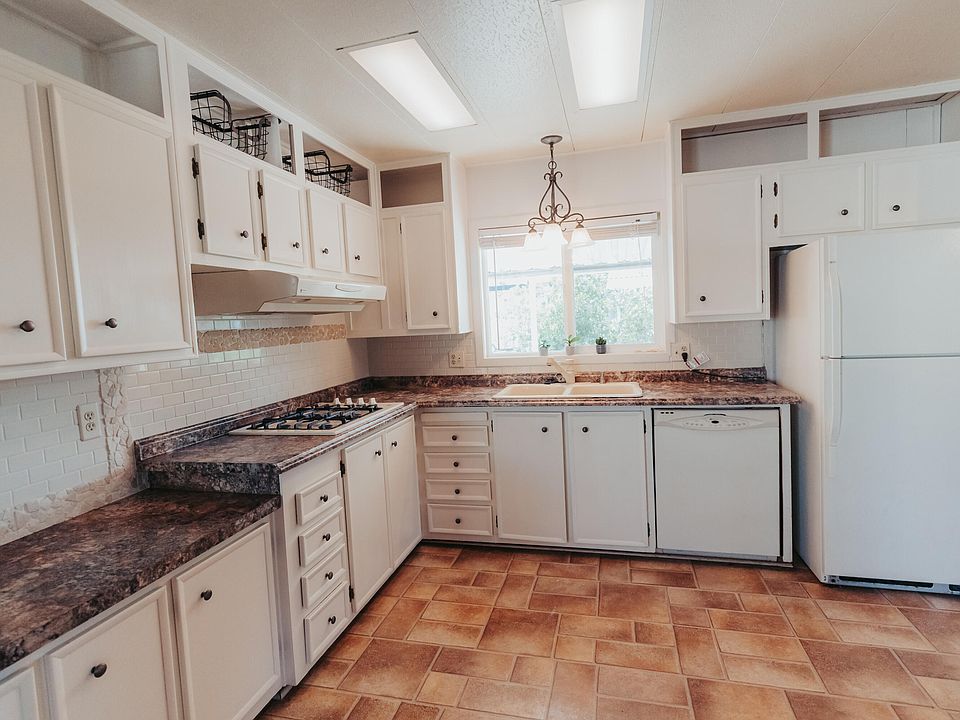 ** Seller willing to credit buyer $5K to closing costs*** Back on the market no fault of seller. Need a financeable, affordable family home? Don't miss this well kept Manufactured home with new upgraded central heat, air and carpeting! All this located in a quiet cult-de-sac. Need a garage? Check out the extra deep stick built garage and car port. 2 covered porches and large parking area. Gas range, large kitchen with tons of cabinets, separate dining and living areas, duel pane windows, indoor laundry, fenced yard with two citrus trees. Even has two citrus trees in the back yard.