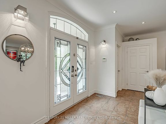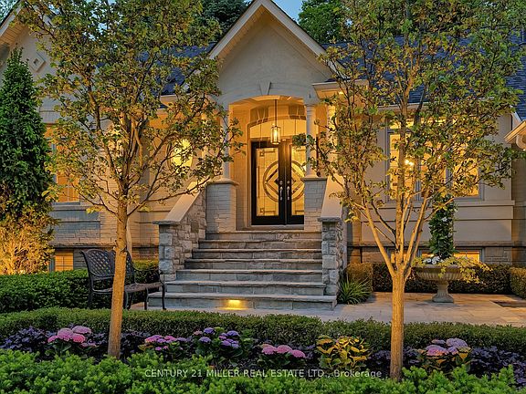 Set back on a quiet court surrounded by lush nature sits this inviting raised ranch-style bungalow. Welcoming exterior framed with a mature tree canopy + beautiful perennial gardens dense with evergreen shrubs and natural stone that carries to the front portico with stately double door entrance.The interior is bright w/a classic warm aesthetic + expansive glazing that captures the lush surroundings perfectly. The ranch-style is evident w/nearly 5,000 sf total w/purposeful open layout with well-defined spaces integrating balance + function. Generously sized foyer centres the flow of the home w/wide hallways + entrances. A defined dining room offers ample space for formal dinners. The expansive great room features a wall of windows framing the rear gardens and central fireplace wall; creating a cozy spot for evenings spent in. The kitchen will appease the chef at heart w/an abundance of milled cabinetry, central island with seating + prep space & walk-in pantry. Mudroom + laundry w/both garage entry + access to the side yard. Dedicated breakfast is ideal for morning meals w/full glass doors opening to the rear stone lounge + central water feature. Set behind double doors the primary is a retreat w/sleeping area & lounge w/cozy gas fireplace. The ensuite is expansive w/deep soaker tub + glass shower & three double closets keeping you organized. A second bedroom w/ensuite is bright with front garden views. The finely executed living space is extended to the lower level where youll find an additional 2 bedrooms + 1.5 baths; one being an in-law suite. A lovely den w/milled book-cases is perfect for the book-worm in the family + the adjacent rec room + wet bar is ideal for game night. Meticulously landscaped grounds are cornerstone elements of this home. The rear yard is exquisite, while being low maintenance + offering tremendous privacy for dining alfresco + enjoying bundled evenings in. With ravine + a lush tree-scape as the front exposure, nature is at your doorstep.