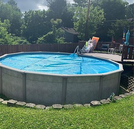 Wonderful large 3-4 bedroom ranch with a 2 car detached garage. Double Lot plus more. Located at the end of the street with the feeling you are in the country. Hugh back covered porch with beauty stone floor. Lovely updated kitchen with all appliances included. Family room has a log burning brick fireplace. Two full updated baths, one on each level. The kitchen, dining area, family room, and laundry are all on the lower level. The main level, is now 3 bedrooms, den (which use to be the kitchen) and living room. Hardwood floors under all wall to wall on main level. Easily can make one of the rooms on the mail level a bedroom. Above ground pool and all equipment. Fenced yard. Home warranty offer.