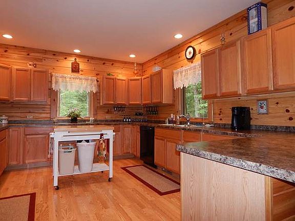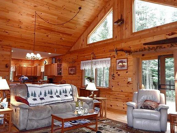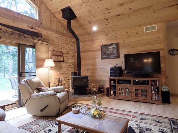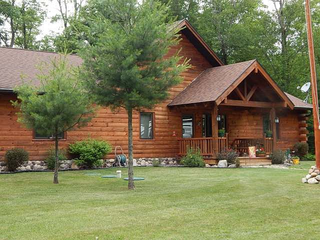 DEEDED ACCESS and a pier on Cranberry Lake with a beautiful year round 3 bedroom, 2 bathroom full log home on 2.5 wooded acres with a very private park like setting. This very pretty home offers cathedral ceilings, ceiling fans, wood stove, and a popular split floor plan with the master bedroom and private bath on one end and the other two bedrooms and bath at the other. Enjoy a welcoming and inviting floor plan that begins on the porch and flows through the foyer into the open concept living, dining, kitchen. Main level laundry, plenty of cabinets, closets with lights, nice upgrades, central air, clean dry crawl with bilco door, 300 sq ft deck, detached 24x48 garage, 10x10 garden shed with overhang for wood storage, and 30x15 canvas storage shed. The 18 horse Snapper tractor with plow and chains & boat lift are negotiable. Plenty of natural light for enjoyable year around living. Have a wonderful home and pier on the chain for this great price. Plus, the VA loan is assumable!