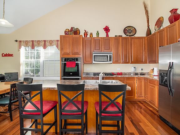 Welcome home! Original owner home located in Stonegate West. Home features 3 bedrooms and 3 bedrooms, including a loft, bathroom and bedroom on the second floor. First floor master suite with upgraded bathroom. Open concept floorplan with vaulted ceilings, gourmet kitchen with stainless steel appliances, large island, sunroom extension, hardwood flooring and fireplace. Additional bedroom, full bath and dining room on first floor. 2 car garage, full basement and paver patio great for entertaining. Active community with Clubhouse, pool and weekly events and clubs for residents. Single family living without all the exterior maintenance. Pride of ownership throughout.