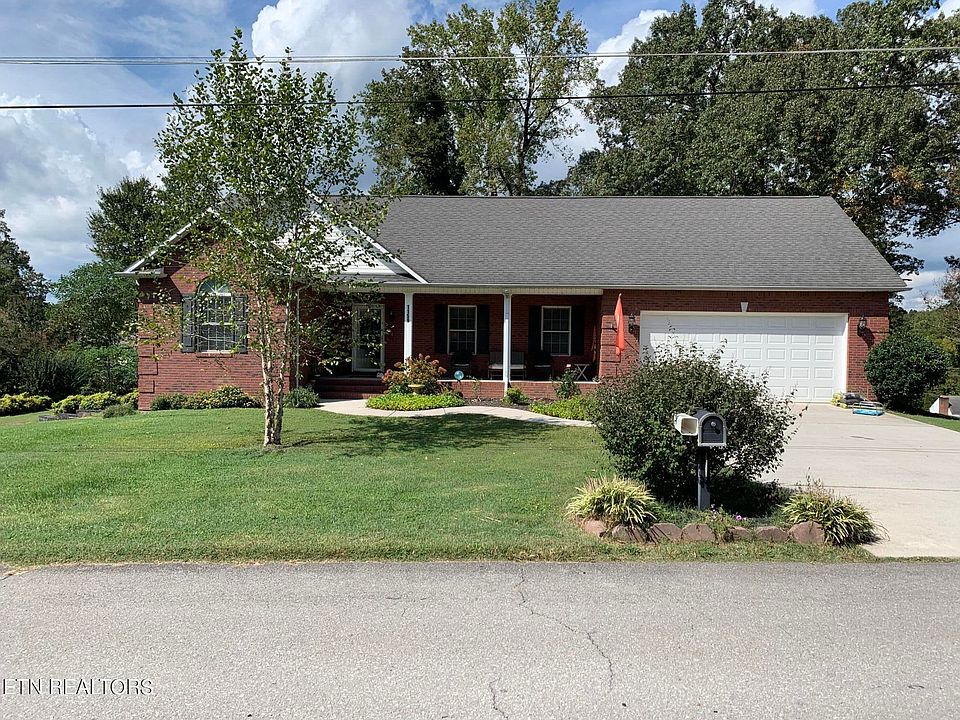 Beautiful three bedroom, two bathroom brick rancher. This home includes 9-foot ceilings and hardwood floors with an open floor plan. The kitchen is fit with Crown molding and granite. This house also includes a sunroom, a Main 2-car garage and a basement 1-car garage with it's own driveway. The yard is spacious with fencing in the rear. Minutes to Watts Bar Lake and convenient to West Knoxville and Oak Ridge.