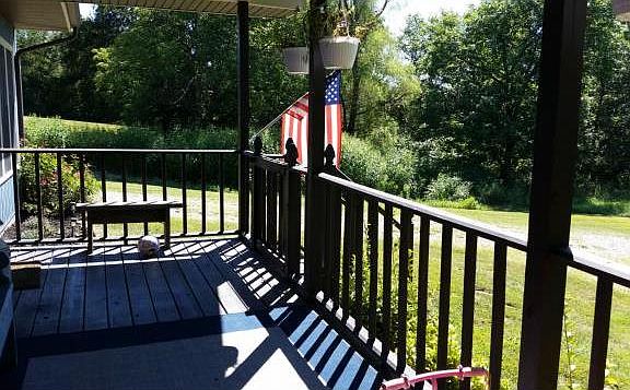 HUNTERS DELIGHT. This property adjoins the Martha Perry Conservation area, plus has a pond and 4-wheeler trails. The home has been completely renovated in the last few years to include new siding, energy efficient tinted windows, roof, electric heatpump and duct work, new flooring, updated kitchen, bathroom with ceramic tiles, enclosed the sunroom and added front porch. The mowed area around the house has a pet security system on about 2+ acres. The property also has an RV dump and RV electric hook up.