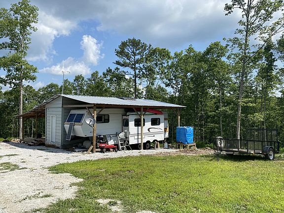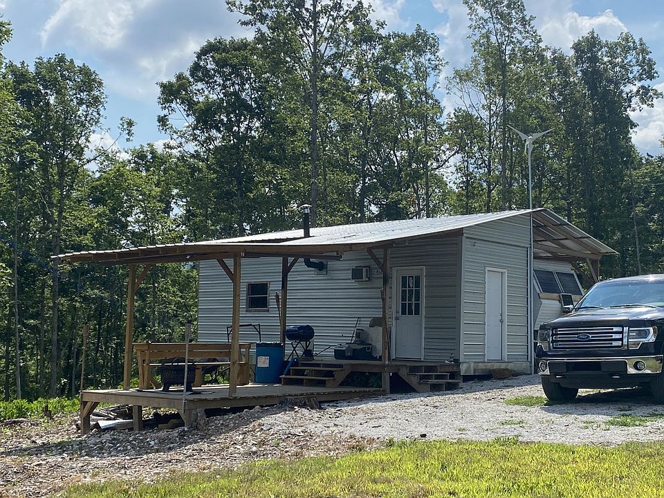 VERY PRIVATE off-grid hunting cabin!! Only about 100 feet away from Arkansas Game and Fish/National Forest land!! This cabin is a metal building and stationary fifth wheel camper combined into a 2BR-1BA 560 SF home all under a metal roof. Self-sufficient with wind generator and solar panels plus batteries, 330 gallon water tank, wood stove, tankless water heater, and window unit AC. 10x28 covered front porch and great mountain view. All antiques and furniture convey with the property. Electric is available ¼ mile away.