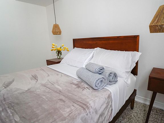 Fully furnished house Step into a bright and spacious mid-century modern home, featuring stunning terrazzo flooring, a cozy fireplace, and antique accents. Unwind in the comfortable living room with an open floor plan, with a fully equipped kitchen and dining area that are perfect for entertaining family and friends. Step outside and bask in the Florida sunshine in the private backyard with a sparkling swimming pool. This home is the perfect getaway, combining style & comfort for an unforgettable vacation experience. Whether you are visiting Orlando as a tourist or looking for a place to stay at, this house is perfectly located between downtown, theme parks, and shopping centers allowing you to discover all corners of Orlando Central Florida. There are two bedrooms with queen size beds, one bathroom and full kitchen. The living room is spacious and has a large Tv, fireplace, and a couch that faces the pool. There is an option of renting a 3/2 for $3500/month Extra pet fee: $350 No smoking allowed. At the moment of signing: first month rent and deposit is required. Minimum rental term is 1 month.