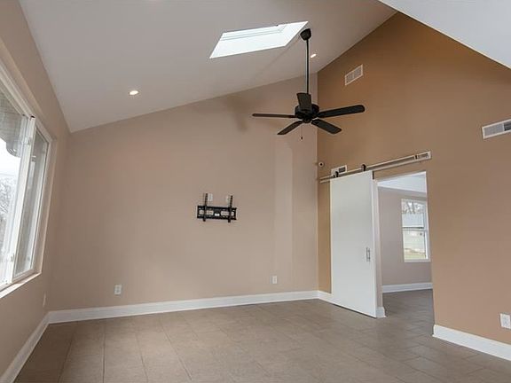 Modern and appealing to all! This home has it all! Formerly a brick ranch this home has been transformed into an elite contemporary home that has been rebuilt from the ground up! The front door greets you with an open concept! A vaulted ceiling with skylights allows for a large open feel with an abundance of natural light. Porcelain tile flows throughout the home. The kitchen will be the envy of your friends! Maple faced cabinets complete with granite countertops! Brand new stainless appliances included. The downstairs BRs flaunt tray ceilings allowing a luxurious feel. Spiral stairs will sweep you up to your private master suite. A master en-suite offering a beautiful walk-in shower and vanity styled in quartz. Lrg master closet. Spend your evenings on the balcony of your private suite enjoying the views of the wooded yard. This is a "green" home. LED lights, Closed cell spray foam insulation. Security system, Modern barn doors. First floor laundry, 200 amp service, new hvac