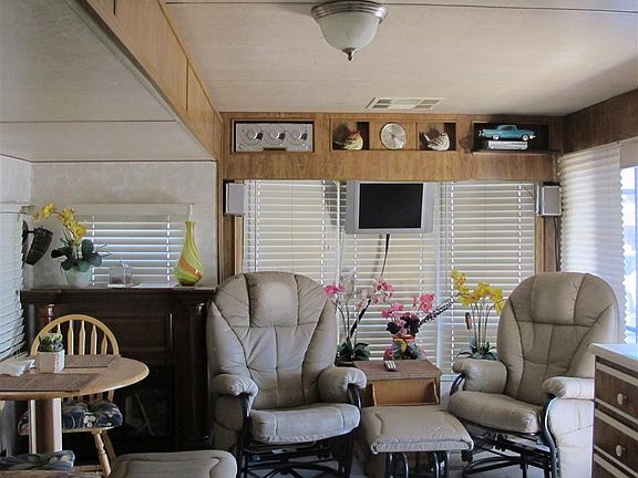This is in a 55 + no pet co-op park. Each person owns a "share" of the land and must be approved by the board. HOA fees include cable TV, internet, rec room, jacuzzi, trash, water and sewer. 1982 8'x35 'Layton travel trailer included in sale. Completely furnished. Cash only. Note-pictured are heating and cooling devices (not central air, but AC that comes on travel trailers and wall heater in living room).