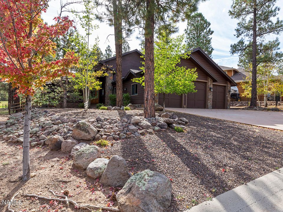 Nestled amidst the serene beauty of the Ponderosa Pines, this spectacular custom-built 4,034 square-foot home offers an unparalleled living experience on the prestigious Elephant Rocks golf course. Set on a generous third of an acre, the residence exudes elegance and sophistication, with solid wood doors and windows that frame the breathtaking views of the lush fairway. As you step inside, you are greeted by soaring vaulted ceilings adorned with magnificent beams, creating a sense of grandeur that permeates the entire space. The heart of this exquisite home is undoubtedly the chef's kitchen, which is a true culinary delight. Featuring upgraded cabinetry, premium appliances, and an oversized gas stove complete with a pot filler, this kitchen is designed for both functionality and style. Additional amenities such as a trash compactor, warming drawers, refrigerator drawers, and a wine cooler elevate the space, making it perfect for entertaining family and friends. The open layout seamlessly flows into the great room, which boasts beautiful, rocked fireplaces that add warmth and charm to the ambiance. This home offers four spacious bedrooms, each with its own en suite bathroom, ensuring privacy and convenience for guests. The primary bedroom is a tranquil retreat, featuring direct access to the golf course and an oversized bathroom that is nothing short of opulent. With a jetted tub, large makeup vanity area, and exquisite finishes, it's a sanctuary where relaxation is paramount. The formal dining room provides an intimate setting for gatherings, while the oversized three-car garage and ample storage solutions throughout the home cater to every practical need. Additional highlights include a whole-house water filtration system and a water softener, ensuring both comfort and quality living. With granite countertops and a design that harmonizes luxury with functionality, this home is a perfect blend of elegance and modern convenience. Whether you're hosting a lavish dinner party or enjoying a quiet evening by the fireplace, this residence promises an exceptional lifestyle amidst the stunning backdrop of Elephant Rock golf course.