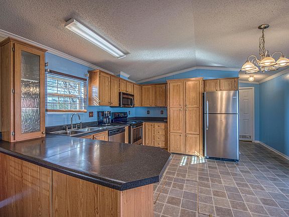 Take a look at this well-maintained manufactured home on a lovely acre lot with gorgeous mountain views. This nice 3 bedroom, 2 bath home offers a nice open floor plan, big kitchen with walk-in pantry/ laundry. The large primary suite offers a huge private bath and a large closet. There are both covered front and rear decks, a large outbuilding, carport, and gazebo area. This is country living at its finest on a large lot with plenty of potential and gorgeous views of the mountains. Close to schools and just minutes to town. Newer roof and Heat pump. Check this one out before it is gone. Buyer/Buyer's agent to verify all information. This home is being sold as is where is to settle an estate. Rear outbuilding with green roof does not convey.