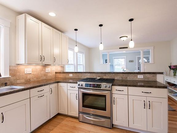 - Kit Dscrp: Flooring - Hardwood, Breakfast Bar / Nook, Open Floor Plan, Recessed Lighting, Remodeled