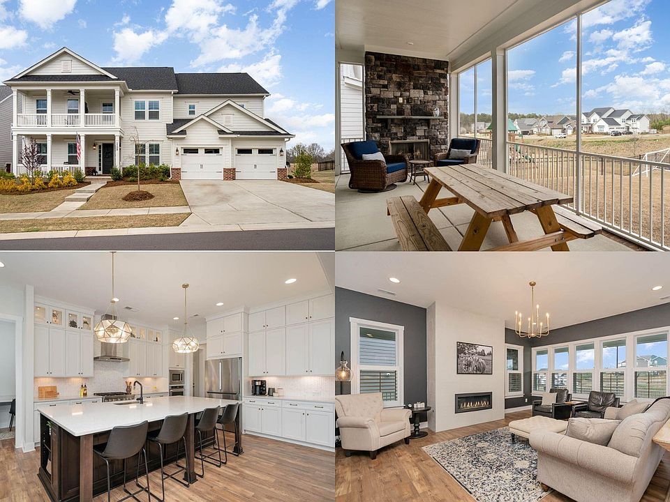 Welcome to this stunning Harmony model in coveted Masons Bend! You're greeted by the large rocking chair front porches, welcoming you to a home you won't want to leave! Light-filled great room, w/ gas FP opens to the custom kitchen w/ upgraded cabinets, gorgeous tile backsplash, quartz counters + an expansive island. 36" gas range is a standout feature that will impress! Bed/full bath on main offers versatility/convenience, while office/flex center off the kitchen provides a quiet retreat for work/hobbies. Step outside to screened porch & enjoy the gas FP + beautiful view of fenced backyard. Drop zone off the 2+ car garage makes it easy to keep everything organized/tidy. Upstairs, primary suite is a peaceful oasis. 2 walk-in closets, dual sinks + separate tub/shower. 3 additional beds + 2 baths offer plenty of space for family/guests. Enormous bonus room filled w/ light! The laundry room upstairs provides convenient access/storage. Too many upgrades to list, this home truly has it all!