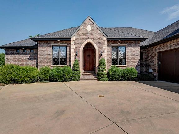 1159 W. Ward Parkway, Springfield, MO 65810. Spectacular views from the double covered decks of this unique Stone Meadow home. The backyard view is of lush green grass with scattered tall walnut trees, along with the winding peacefulness of the Ward Branch Creek. The location is priceless, and this quality finished home has many upgrades. There is a side entry garage at the end of a cul-de-sac in a desirable, friendly neighborhood. The main floor is all hardwoods with a large open kitchen/dining/living area. The kitchen has granite tops, stainless steel appliances (built-in fridge) and recently added limestone tile. There are many large windows, formal dining area, and French doored office. The main floor has a large and spacious master suite, along with 2 other bedrooms.The basement is mostly hardwoods and has 3 additional bedrooms (total of 6), with a game area, wet bar, and family room. This home has a warm feeling inside and outside.