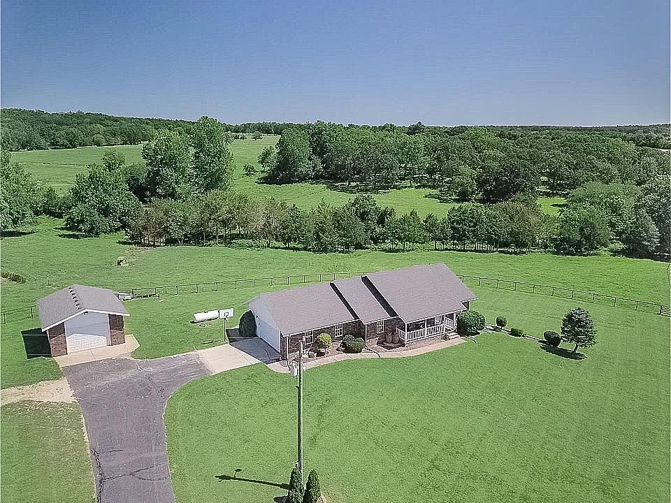 Enjoy the peacefulness and seclusion of this one owner, custom built, finished walk-out basement home on 9.1 acres! Located in one of the most desirable areas of Webster County, this property is conveniently situated just a few minutes from Marshfield and 18 miles to Springfield on a dead-end street! Inside the home you'll find vaulted ceilings, granite countertops, stainless steel appliances, beautiful hardwood floors, and a wet bar in basement. Enjoy amazing views from the covered front porch and back deck. Nice downstairs patio area as well. The land is perfect for a hobby farm with a working cattle chute, pipe and cable fence, a small barn, automatic waterer, wet weather creek, and plenty of grass! Many wildlife are attracted to a clover food plot on the property where a permanent deer blind stands. Don't miss out on this beautiful property!