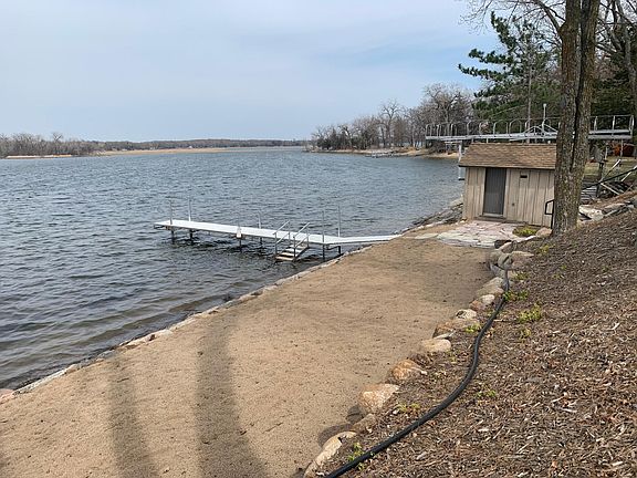 Fantastic 3 bedroom with den or additional bunk room, 2 bath, year round Clearwater Lake property with knotty cedar, oak floors, and beautiful fireplace. Perfect gentle slope to newly landscaped sand beach area and amazing views!