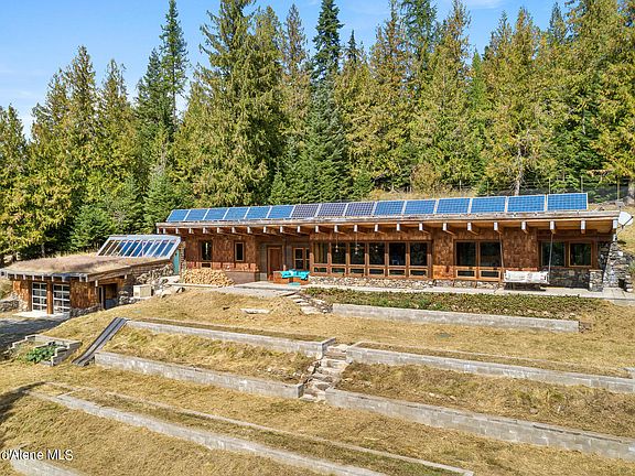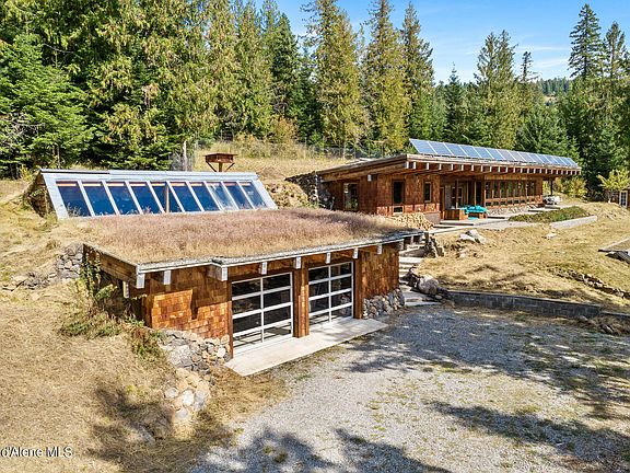 This beautiful, earth-sheltered OFF-GRID home is completely self-sufficient, south-facing, producing its own electricity, water, and food! This home has thermal stability w/ the home temperature never getting below freezing & does not require air conditioning in the summer. Home is 2 beds/2 baths with chef's kitchen featuring commercial grade Miele refrigerator, 36'' Blue Star Cook Top and Wall Oven, travertine countertops with a butcher block island. The master bedroom suite includes walk-in closet, Japanese style soaking tub, dual shower heads with rain shower & an outdoor shower right outside the door. 2nd bedroom includes built-in bunk beds. There are 4 operable skylights to let in plenty of natural light and air flow. Outside is a studio guest home w/ kitchenette and bathroom. Property also includes a year round creek, excavated location for half-acre future pond, detached earth-sheltered 2 car garage with root cellar storage, earth-sheltered greenhouse with ability to grow year-round, garden shed, 12' X 24' unfinished workshop with power (close to completion) with attached 14' X 28' carport. Off grid equipment includes 15 solar panels (230 watts/each) on a 48 volt DC system w/ charge controller voltage inverter to convert to A/C. Home is conventionally wired. There is a wood fired boiler for radiant floor heat that is also used with a passive water heater (during winter). 8.5 KW propane whole house backup generator, 500 gallon buried propane tank that runs cook top, oven, dryer, back-up tankless water heater. Property also includes tree house, playground, permanent masonry raised garden beds with soaker hoses, mature fruit trees, fully fenced with the exception of driveway. Total privacy - no line-of-sight to neighbors - property is bordered by Stimson Lumber on 2 sides, then 1000's of acres of National Forest!